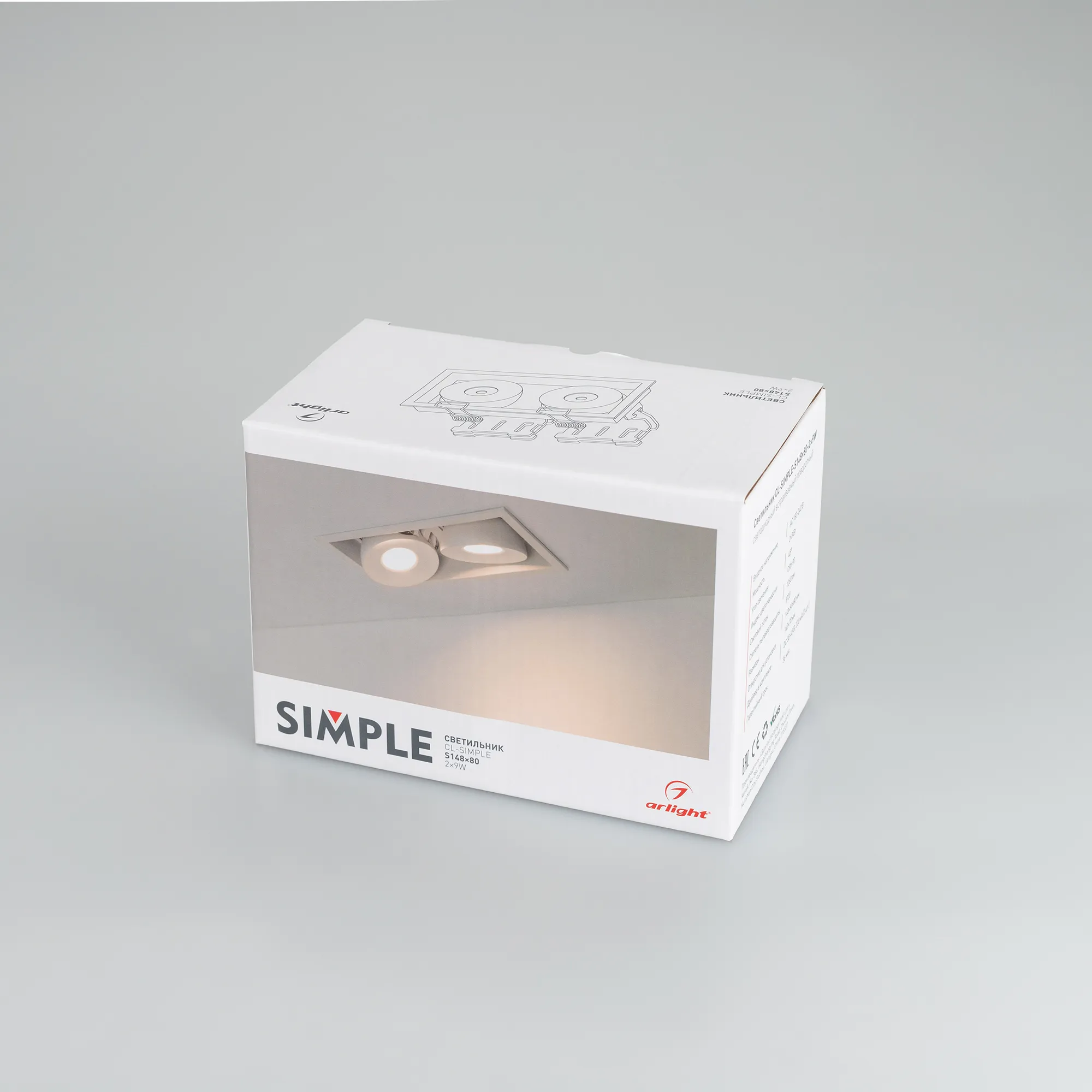 В магазине Arled Market Вы можете купить "Светильник CL-SIMPLE-S148x80-2x9W Warm3000 (WH, 45 deg) (Arlight, IP20 Металл, 3 года)"