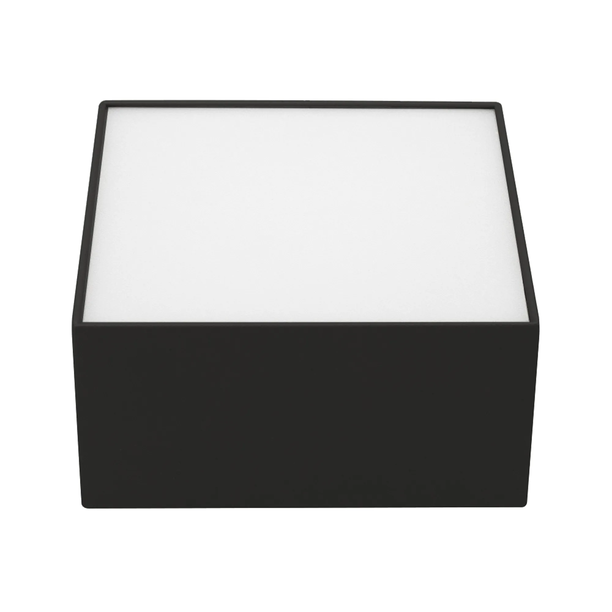 Накладной светильник. Мощность 13 Вт, св. поток 540-680 лм, 52 лм/Вт, дневной 4000 K, CRI>90, угол 120°, напряжение питания 230 В. Черный квадратный корпус из алюминия, экран PC, степень защиты IP40. Размер: длина 120 мм, ширина 120 мм, высота 59 мм. Монтаж накладной. Драйвер 20-40 В, 300 мА, пульсация <5%.