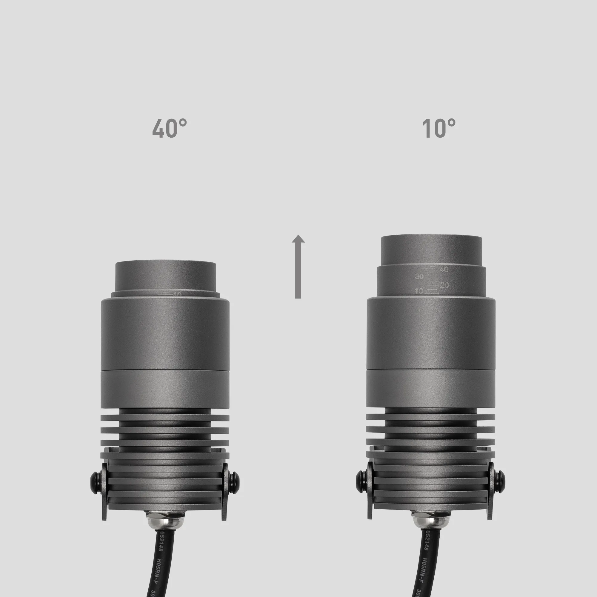Уличный светодиодный прожектор, мощность 8Вт, регулируемый угол освещения 10-40°. Цвет ТЕПЛЫЙ 2700К, световой поток для угла 10° 240 для угла 40° 420лм. Влагозащищенный корпус IP67 - темно-серый алюминий, экран из закаленного стекла. Угол поворота корпуса в вертикальной плоскости 135°. Питание 230В, мощность 8 Вт. Размеры DxH - Ø52x103мм. В комплекте 1м провод.